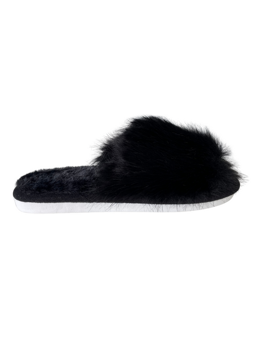 Pantufa Feminina Aberta Chinelo de Pelúcia Conforto Premium Preta