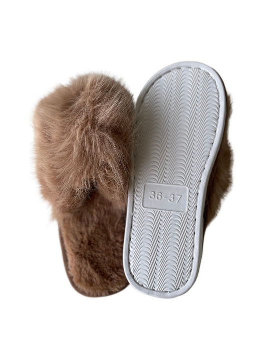 Pantufa Feminina Chinelo de Pelinho Conforto Maternidade Luxo Mocha Mousse